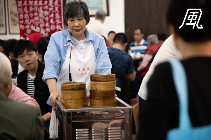 推着點心車的老員工仍然不忘蓮香樓,圍裙仍然是舊有,象徵着一切不變。(黃知日 攝)