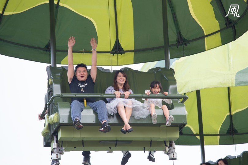 一家人在高空中顯得份外雀躍,女兒在父母親的陪伴下更開心不已。