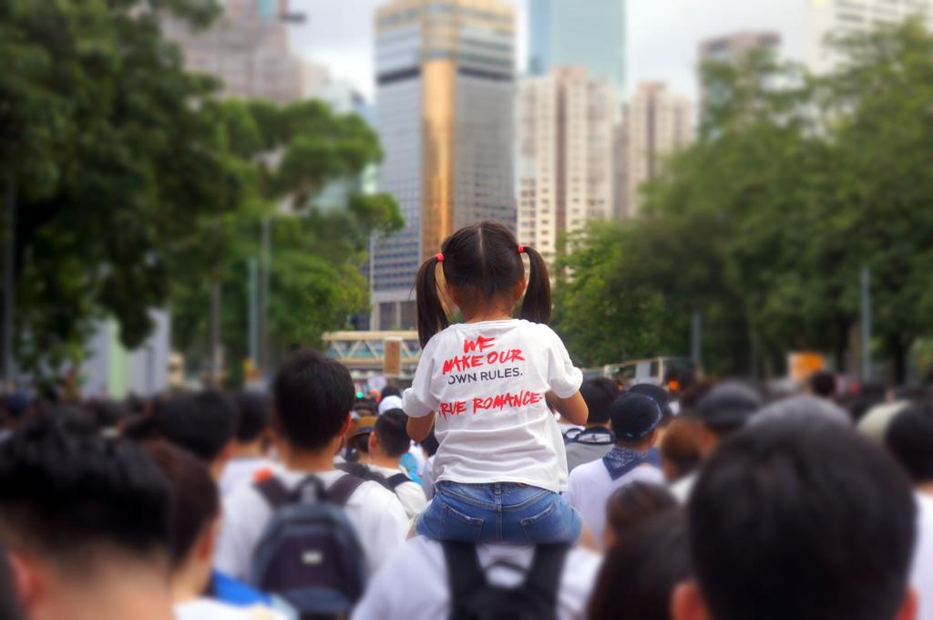 沿著遊行路線穿越的是一百萬人的風景,有報章翌日頭條以百萬行,形容這3.3公里的長征。家長以腳步和汗水,道出最真誠、最卑微的願望:「送其出國很容易但無意思,留下來就有責任為下一代爭取」,在手抱嬰孩還未學懂是非黑白之時,家長也不敢輕言放棄。