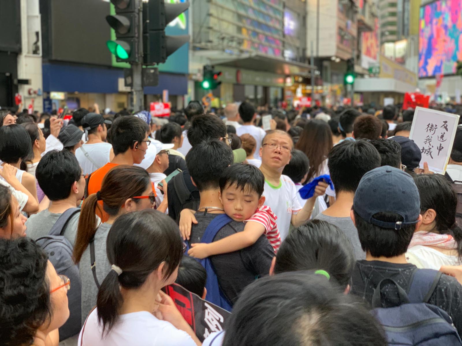 有父親坦言,遊行對於小朋友來說,無娛樂、無冷氣、更無4G訊號,對小孩來講如酷刑無異,父母要邊哄邊行,帶著孩子同行的父母,要比常人多幾倍的堅忍、耐性。筆者順插遊行隊伍中,轉眼到了灣仔,在大公報前正播放特首畫面及支持修例的短片,民意表達,如雷貫耳,只是穿不透鐵石心腸。有父母揚言,香港長此下去,不知如何教導孩子相信是非曲正。