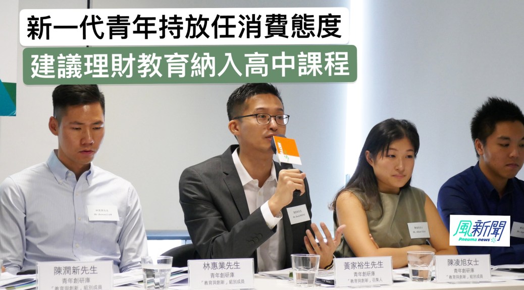 青年創研庫「教育與創新」組召集人黃家裕指,理財教育並非學校必須涵蓋的常規課程內容,教育工作者因而容易忽略其深遠價值和影響。他建議教育局把理財教育納入為新高中課程「其他學習經歷」的指定範疇之一,藉此鼓勵學校在恆常課程以外,加強學生理財能力的培訓,讓他們及早掌握最基本的理財知識。