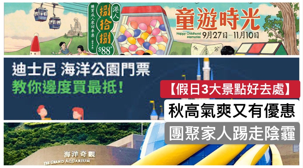 這些月來,大家可能都累了。好趁秋高氣爽及連續多天假期,再加上平時擠滿了遊客的香港景點,卻因為市道低迷,紛紛減價速銷,以優惠的價錢吸引香港人消費。