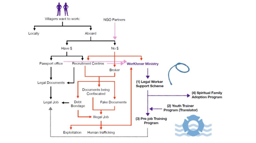 據Janice所述,這是因為在鄉鎮經濟條件差,遇上家人患病、孩子要讀書等需要大筆金錢的處境,他們急需工作,惟鄉鎮工作機會少,跨境去泰國工作是最容易的選擇,又加上因為資訊貧乏,當地人不知怎樣可以合法去工作,惟有投靠人口販子。「其實合法到泰國工作,只是需要有效證件,而申請一個合法證件只需要大約1000元港幣,某些人販子的收費比申請證件更貴!」Janice痛心地陳述當地的狀況,慨嘆資訊貧乏令許多柬國人墮入黑工命運。