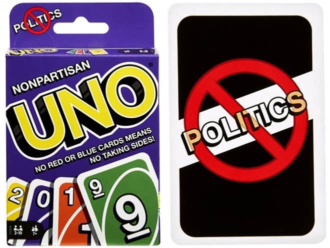 UNO DECK REMOVES RED AND BLUE CARDS TO KEEP THANKSGIVING DINNER POLITICS-FREE