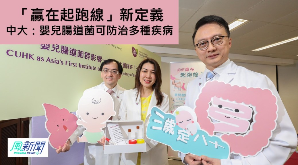 香港中文大學最近展開一項針對孕婦及其嬰兒腸道菌群的研究,以評估嬰幼兒時期的環境及飲食因素如何影響兒童的健康,此研究亦有助於評估孩子患病的風險因素、預防及疾病治療。中大醫學院院長兼腸道微生物群研究中心主任陳家亮教授指:「由於醫學研究讓我們知道嬰兒的腸道菌群可以影響一生,所以我們正要打開『三歲定八十』這個古老說法之謎。」