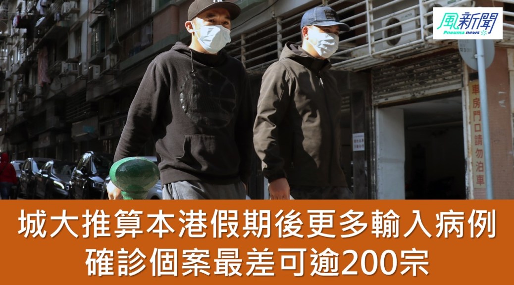 城大生物醫學系助理教授阮相宇的團隊引述內地研究數據,以平均僭伏期4.8日推算,1月29日至2月2日每20萬不論原因(旅遊、探親後返港等)的人由內地抵港,便會增加15.4宗輸入病例。內地研究指新型冠狀病毒每一個感染者可以傳染2.92人,參考沙士傳染平均日數8.4天計算,即每名患者在8.4日內再將病毒傳染他人,可出現45.1宗第二波感染,連同第一波(從內地返港)患者15.4人,每20萬內地入境人口將產生60.5位確診患者。