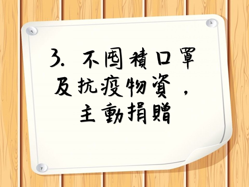 3. 不囤積口罩及抗疫物資,主動捐贈