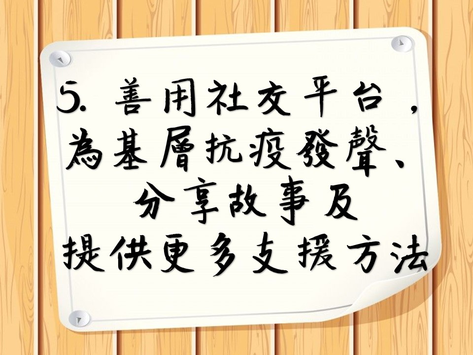 5. 善用社交平台,為基層家庭抗疫發聲、分享故事及提供更多支援方法