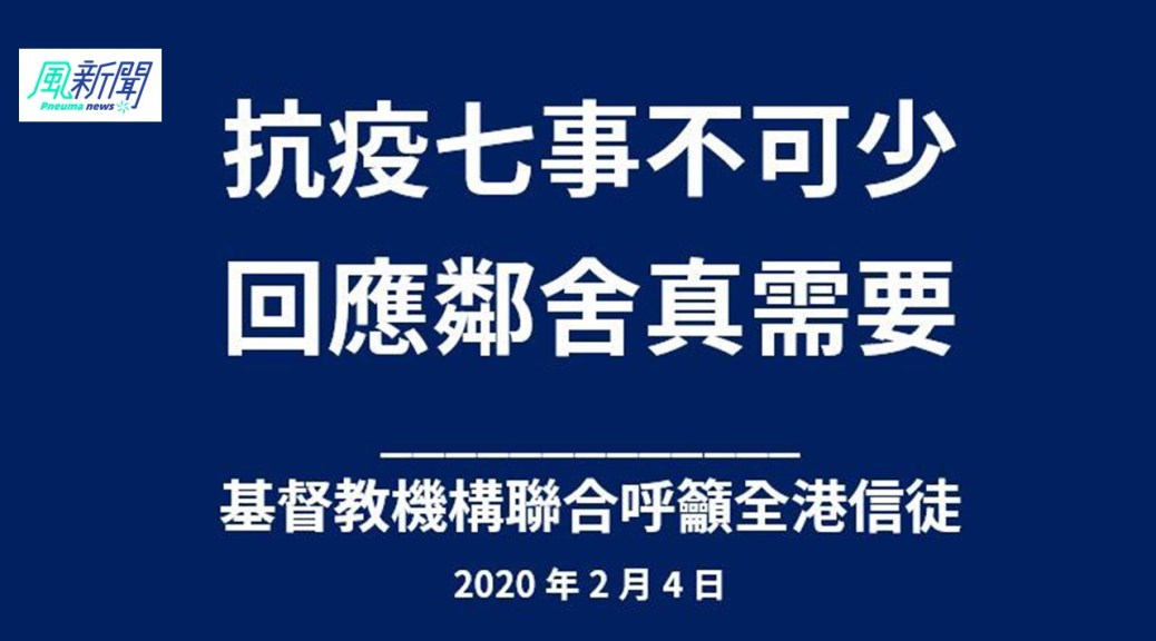 基督教機構因此發聯合聲明,呼籲全港信徒以「防疫七件事」關愛身邊的基層家庭: