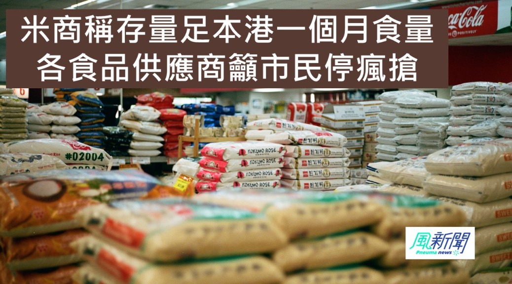 香港米行商會理事長陳建年表示,本港食米因應本地人口味,9成來自泰國及越南,只有7.7%來自內地,因此內地即使無供應,亦不會有問題。貨架上冇米只因市民瘋搶,致運輸來不及把食米送到,讓零售商上架。他更進一步指目前米存量足夠港人一個月食用,今年首季的1萬3千噸儲備,目前也仍未需要動用。