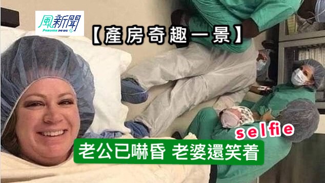 有些孕婦分娩時都會希望老公陪在身旁加油打氣,或是幫忙拍攝影片,但這種場景對某些老公而言,可能有點招架不住!英國有一名孕婦分享了一張在產房的自拍照,照片中只見她還躺在手術台上開心笑着,但是,醫護人員卻忙着查看在後面嚇到昏倒的老公。這張有趣的自拍照上傳後被網友瘋傳。