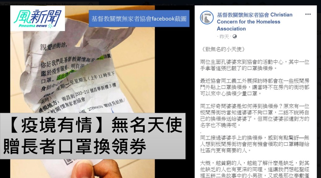 昨日協會發出《致無名的小天使》的Facebook貼文,指有兩位陌生婆婆來到協會的活動中心,其中一位手拿皺巴巴的口罩換領劵。協會同工由是好奇,為何陌生的婆婆會得到換領劵。