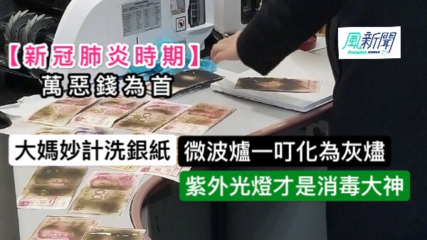 新冠肺炎(武漢肺炎)疫情持續,市民開始養成勤消毒的習慣,銀紙當然是萬惡温藏;江蘇無錫一名大媽擔心人民幣上可能沾染新冠肺炎病毒,將3000元現金放入微波爐中加熱消毒,最終全部燒焦。專家指,消毒鈔票要用紫外燈或高温等專業儀器。