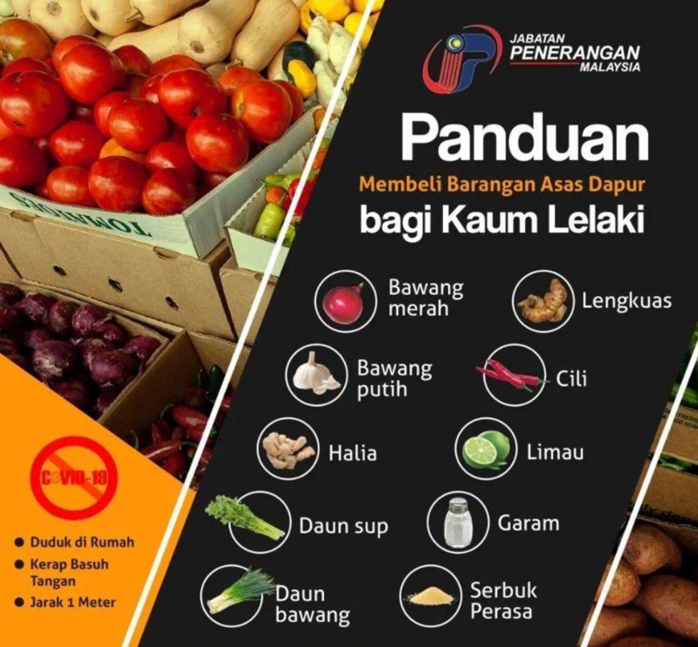 因應新型冠狀病毒疫情緊張,馬來西亞日前 (3月18日) 推出進一步的管制令,規定只有「一家之主」(head of family) 才可以出門購物,試圖將人際活動降到最低。然而這則禁令造成大批不知道要買甚麼,甚至不知道菜長甚麼樣子「自認一家之主」的男人,在超級市場裏迷路。