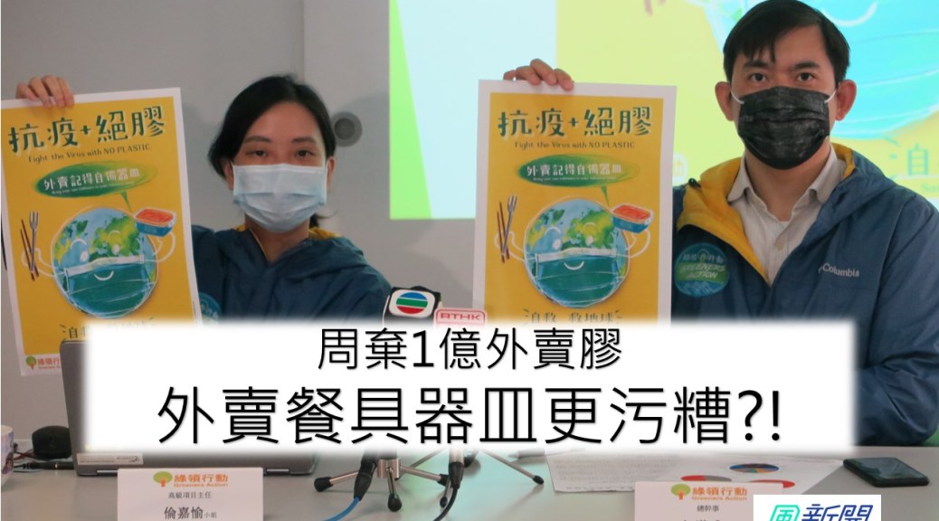 為保持社交距離,不少市民用膳以外賣代替堂食。然而有環保團體就港人購買外賣消耗的即棄塑膠進行問卷調查,推算全港市民於疫症期間每星期消耗超過1億件外賣即棄塑膠,直指「疫症未平,先釀膠災」。