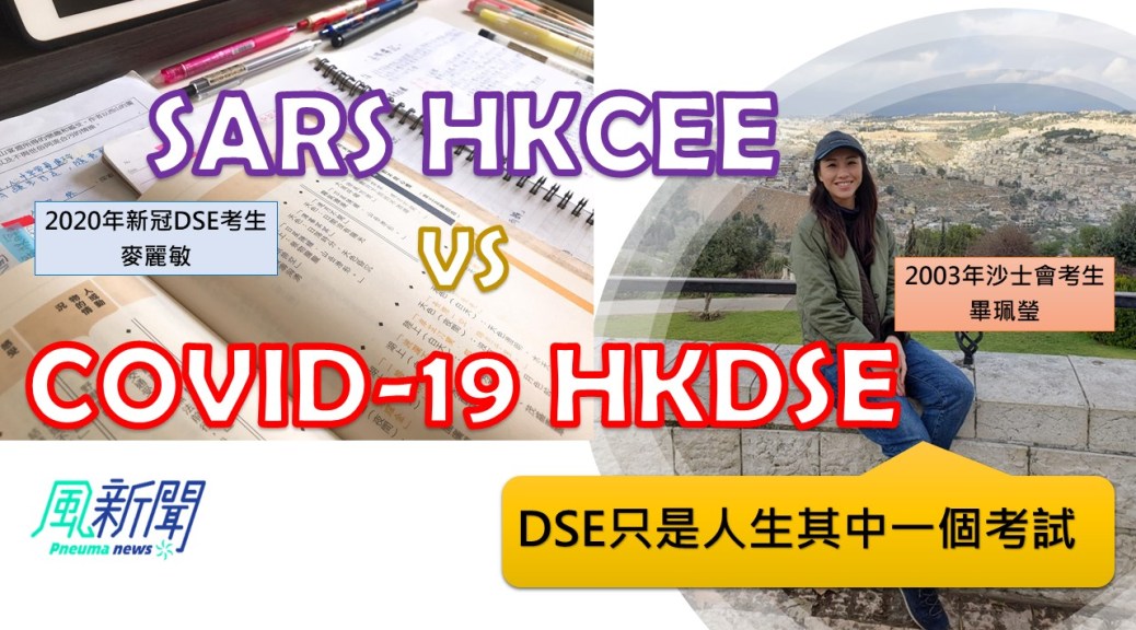 “麥麗敏——應屆DSE考生,和畢珮瑩——當年沙士會考生,二人分別細訴疫症下的應試心境。”