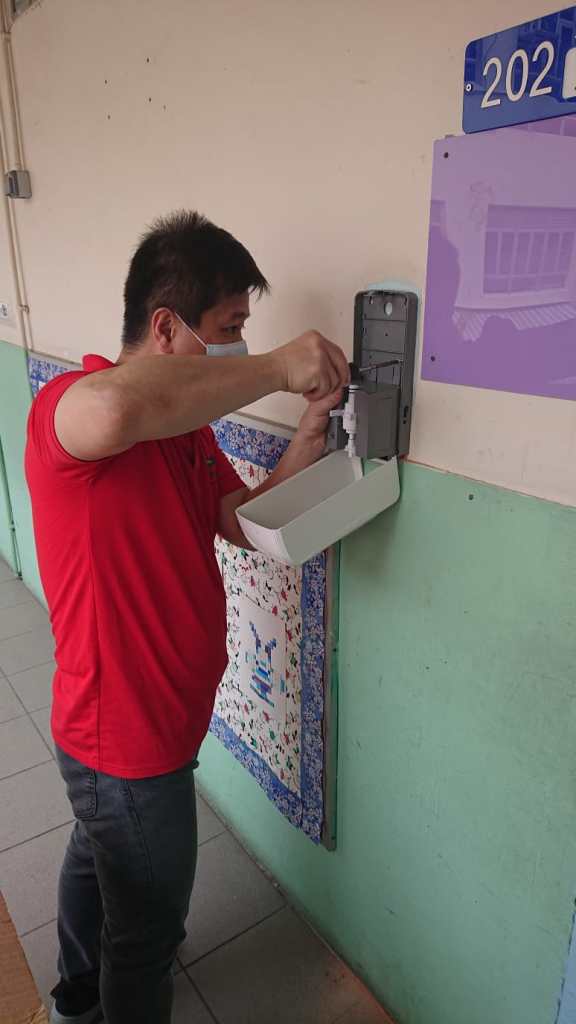 施志勁指在疫症爆發以來,花了不少時間為學生家庭需要和將來復學作準備,有善長捐給學校的善款,三分二購買超市禮券贈學生,三分一買學校復學所需防疫物資。因為資金緊絀,得悉每部搓手液機要多加100元裝工費,全校共要花上1400元,施志勁決定親自裝,並指這也是教育工作的一部分。
