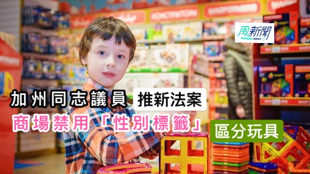 美國加州一名眾議員近月提出一項法案,禁止州內商場使用「性別標籤」分類貨架上的玩具,例如:女生或男生玩具專區等字眼,違法業者要面臨1,000美元的罰款。