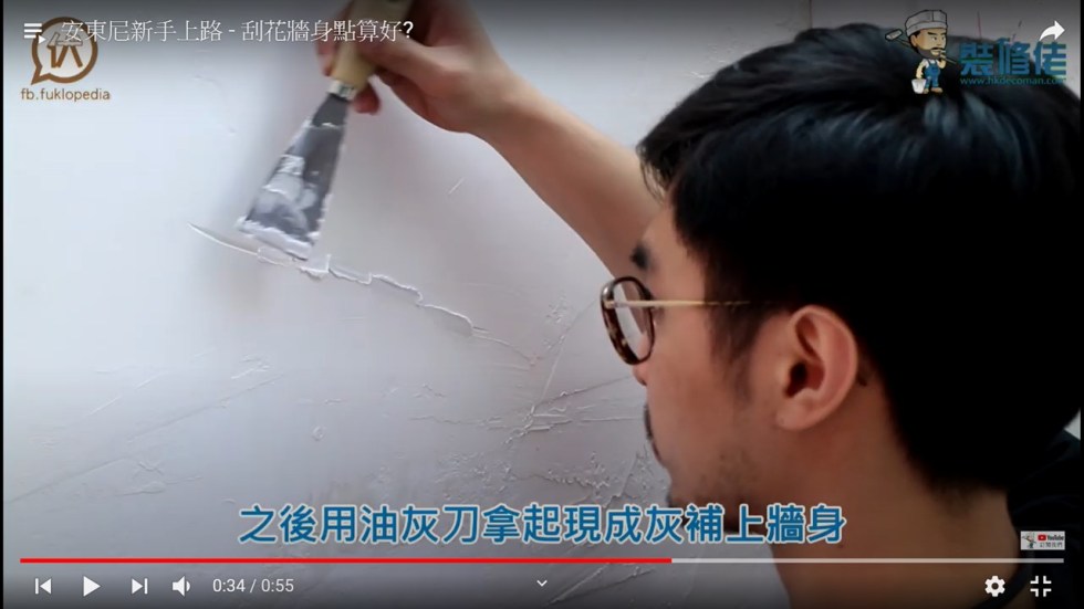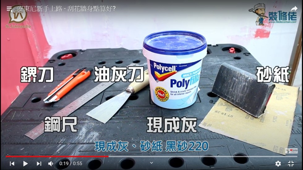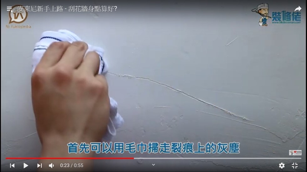 待現成灰乾透後,如果有現成灰突出來的話,就可以用砂紙將它打磨走。
