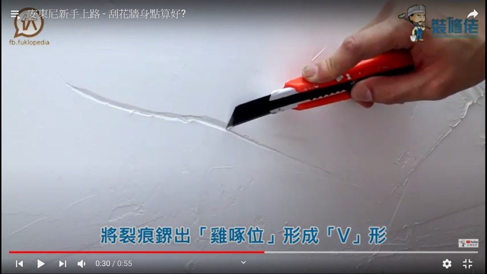 將裂痕鎅出「雞啄位」形成「V」形,如此一來之後才容易補灰。