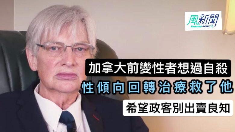 一名曾變性的加拿大男子溫曼(Robert John Wenman)呼籲加拿大政客,不要禁止為跨性別人士提供輔導,因為他曾因接受諮詢而重生,也放棄了想自殺的念頭。