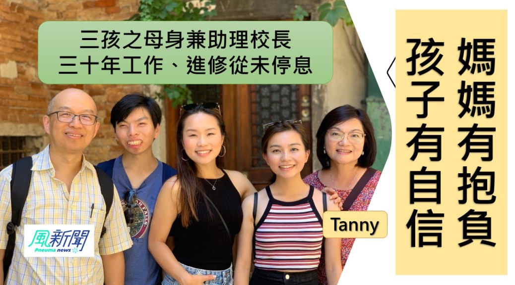 光是做好「母親」一職已殊不簡單,但Tanny還是一位助理校長,三十多年來投身小學教育、家長教育工作從未停息,還有十多年時間要兼顧工餘進修。