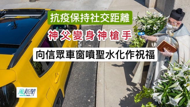 綜合外電報導報導,信徒會在復活節前一天到教堂去接受神父的聖水祝福,不過近日因新冠肺炎疫情期間須遵守社交距離,美國一間天主教的神父就想出了一個特別的方法。神父佩爾奇站在教堂外,戴着口罩、防護面罩和手套,拿着水槍向民眾的車窗噴射聖水祝聖。他說:「這個想法很古怪,但是大眾普遍能夠接受。」