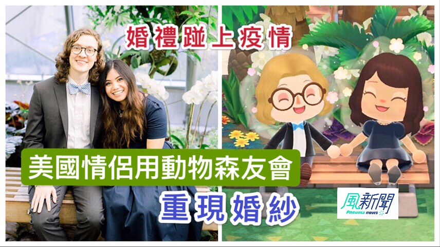 全球不少新人因肺炎疫情而將婚禮延期,甚至取消擺酒及婚攝。美國一對新人Arabella Villanueva跟Sam Redus,由去年9月開始籌備婚禮,但在今年初碰上疫情,婚禮被迫改「形式」。所謂新形式,便是走入虛擬世界《動物森友會》(Animal Crossing)裏,拍攝婚紗相。