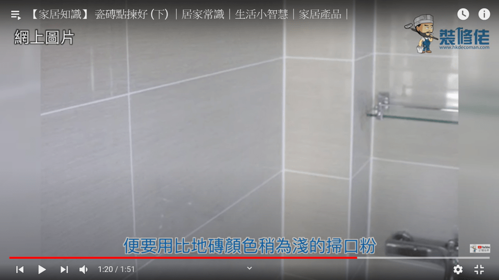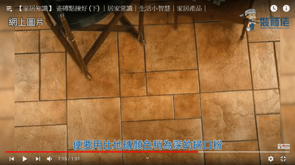 淺色磚就要用比地磚顏色稍為淺的掃口粉。