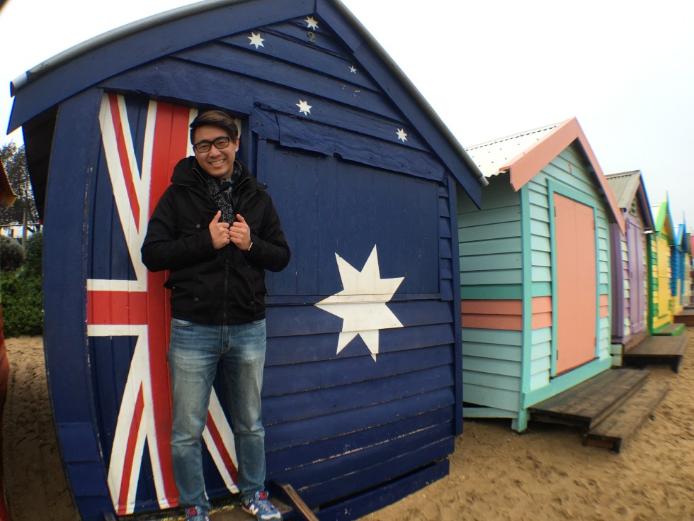 留澳時期,攝於著名景點阿波羅灣 (右) 及彩虹小屋 (左)。