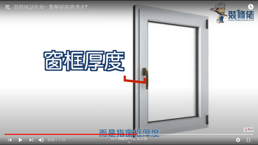 一般安裝鋁窗的師傅,會建議顧客使用「40料」(40mm闊)或「50料」(50mm闊),然而這不是形容玻璃厚度,而是窗框厚度。