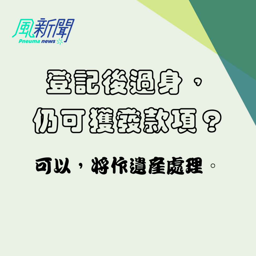 九、成功登記後過身,仍可獲發一萬元嗎?