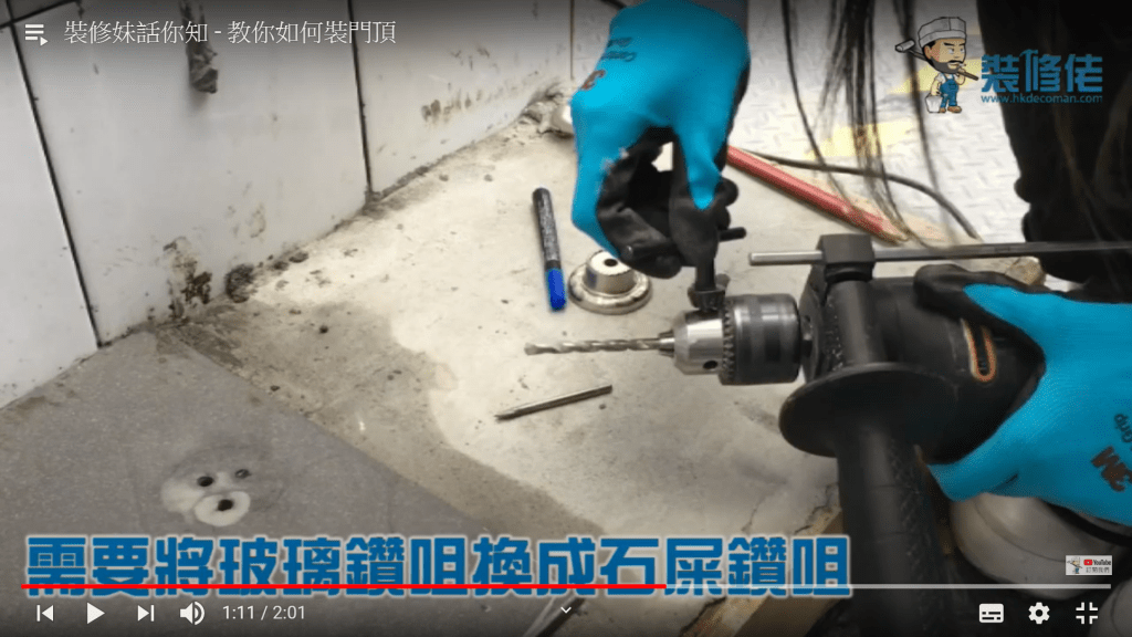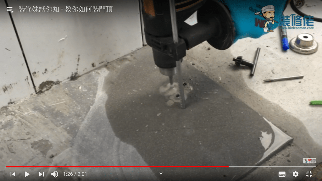 首先為衝擊鑽安上玻璃鑽咀,用以鑽穿瓷磚。