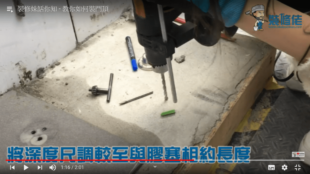 把深度尺調較至與膠塞相約長度,然後便可以開始鑽鑿石屎了。