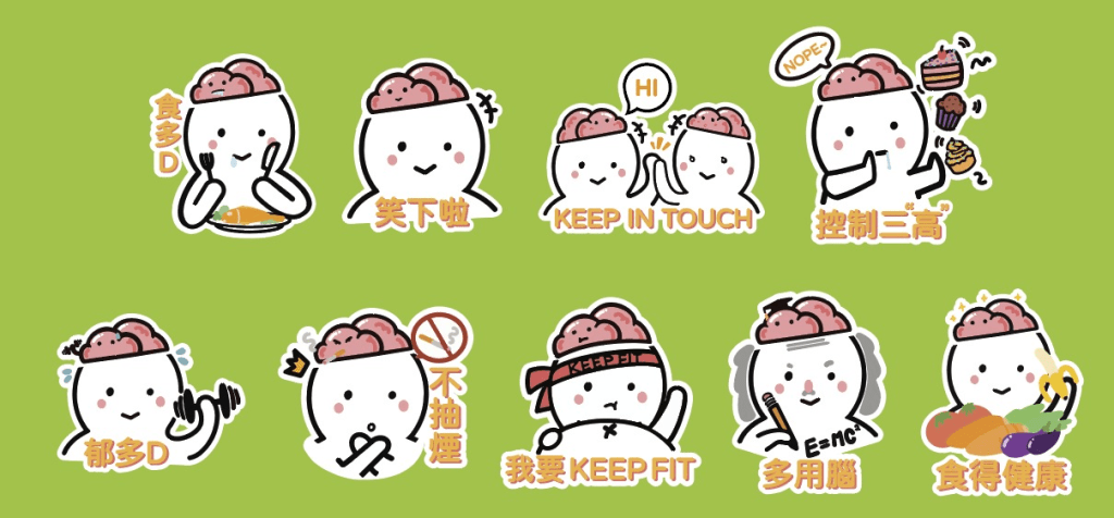 認知障礙症尚不可根治,但可預防。藉着今年的世界認知障礙症日,聖雅各福群會懷愛長者鄰舍中心誠邀青年設計師胡瑋樂以「腦力君」為主角,參考世界衛生組織就預防認知障礙症發出的指引,創作了8款貼圖(WhatsApp Stickers),以推廣多運動、健康飲食和控制三高等預防認知障礙症的資訊,期望不同年紀的人士均可藉着「腦力君」貼圖,了解及降低患病風險。
