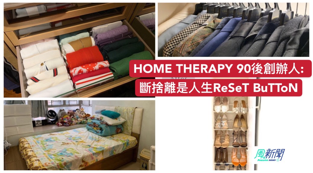 及後Sharon甚至考取日本收納檢定協會的專業驗證,毅然辭去月入3萬的分析師工作,並在去年8月創立Home Therapy,提供諮詢及上門收納服務,教人學會「斷捨離」。公司官網首頁便寫着:「斷」絕不需要的東西、「捨」去多餘的廢物,脫「離」對物品的執。