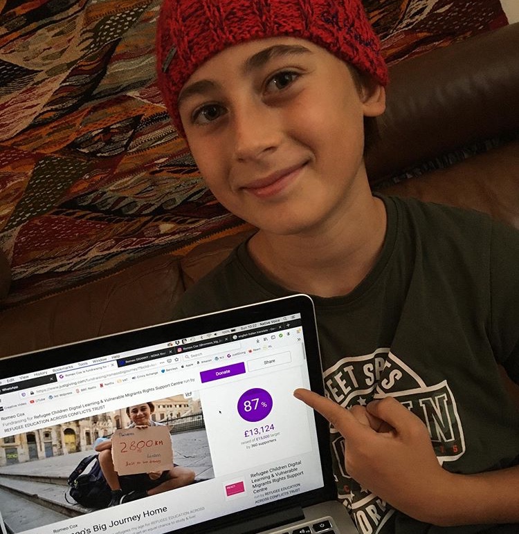 考克斯此行發起為難民組織「Refugee Education Across Conflicts Trust」募款,已募得13,731英鎊。他提到,有位朋友正是從迦納逃到意大利西西里的難民,離家的路途比他走的這一趟還要遙遠、更加危險,還沒有水和食物。當他從英國搬到意大利時,這位朋友幫了他很多忙,因此希望能做點事情回報他和其他難民。