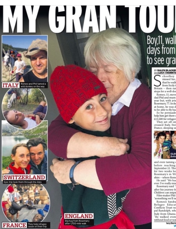 在46歲父親陪伴下,父子倆從6月20日從意大利出發,行經瑞士和法國,旅程中大小狀況不斷,例如與凶狠的野狗搏鬥、多次迷路,走到腳都磨出血來,不過,露宿星空下也成為考克斯途中最美好的回憶。兩人最終花了93天、步行了2,735公里才抵達倫敦,因為穿越國境,還被多隔離了2周,才終於見到祖母。