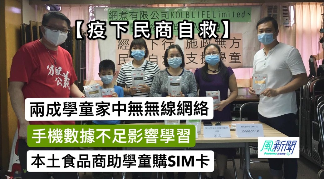 肺炎疫情肆虐期間,學校改為網上教學,對於學童影響極深。最近一項調查顯示,接近兩成學生家中沒有無線網絡,兒童或需利用手機數據上網, 數據不足,影響兒童無法打開網站上堂。有本土食品商自薦購買數據卡,支援有需要學童。