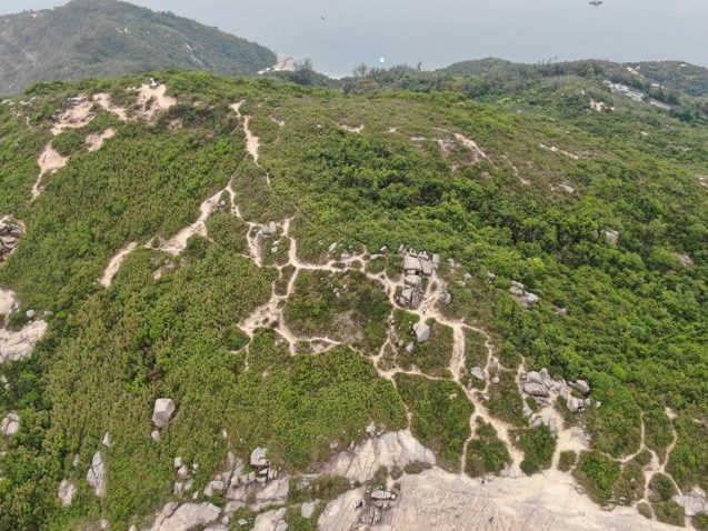 本港有環保團體「綠惜地球」早前到訪多個郊遊徑,透過航拍觀察山徑變化,發現「傷痕」纍纍,環團希望行山者不要為一刻的歡樂或打卡照,將假日「好去處」變得「傷痕」滿佈,更要實踐「無痕山林」郊遊樂。