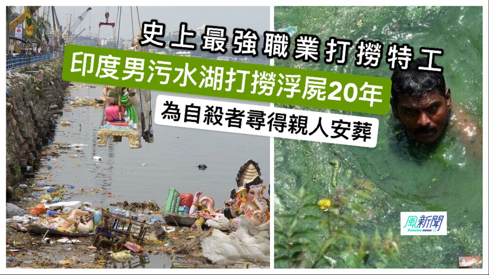 印度一名男子從10歲開始,在著名大型人工湖「海珊薩珈湖(Hussain Sagar lake)」協助警方打撈浮屍,至今20年,他撈獲的屍體連他自己都記不清數目,但卻救了超過100條生命,為當中的家庭重拾歡樂。