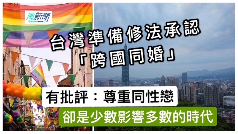 看平權好像理所當然,守護家庭教育更加重要。台灣即將修改同性婚姻法例,容許台灣同志與來自港澳地區或其他外國籍伴侶在當地註冊結婚,有別於此前要求另一半所屬地區必須同樣承認同性婚姻的規定。有網友說:同性戀,一句話就是尊重,政府應該保持中立的立場,不應該鼓勵。