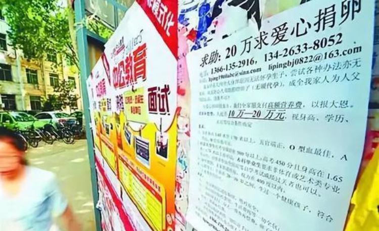 據多間內地傳媒報導,許多大學周邊的小食街、公廁、醫療機構都能看到賣卵廣告,「愛心贈卵、月入過萬」、「微創無痛採卵」,以招攬許多女大學生賣卵賺錢;以17至28歲女子為目標,以年齡、外貌及學歷來決定,價格約在人民幣1至3萬元。
