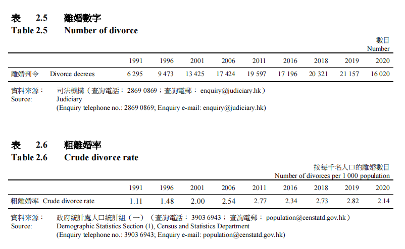 再細心看警方和防止虐待兒童會的專家分析,不難發現,兒童要得到各方面的支援,這是自然,但家長,婚姻關係更需要支援。從政府統計處的數字可知,香港的離婚率除了去年因為疫情下降外,每年均上升,而結婚人數則相反,2020年的離婚數字為16020宗,每千名人口計算的離婚數目為2.14,同年的共有6523宗再婚,佔全部婚姻總數的23.4%,即大約每四宗婚姻就有一宗是再婚,相比1991年,相應數字的百分比是11.5。
