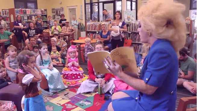 7CFC2C04-4BE8-4FE4-9E12-8894C459185D-1131-000002D959E3CECF 2019-08-04 654 × 368 7CFC2C04-4BE8-4FE4-9E12-8894C459185D-1131-000002D959E3CECF 以妖艷女性衣飾打扮的男子向小孩講童話故事,其實變裝與同志文化密不可分。(圖片來源:christian news)