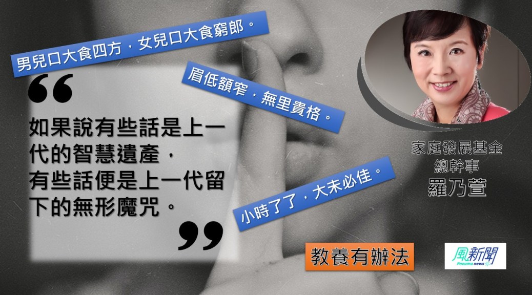 隨著孩子的成長,聽到的話也愈來愈多。不要輕看這些話,有時候會在幼小心靈中留下不能磨蝕的烙印。如果說有些話是上一代的智慧遺產,這些話便是上一代留下的無形魔咒。歷年搜集下來,竟也有一列: