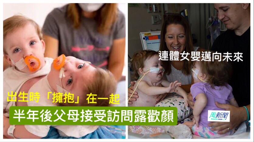 綜合媒體報導,33歲美國媽媽艾麗森誕下一對女兒拉貝絲(Sarabeth)與艾蜜莉亞(Amelia),她們出生時就「緊抱彼此」從胸部到肚臍都是相連在一起。她們有各自的胳臂、腿和心臟,但肝臟是相連的。